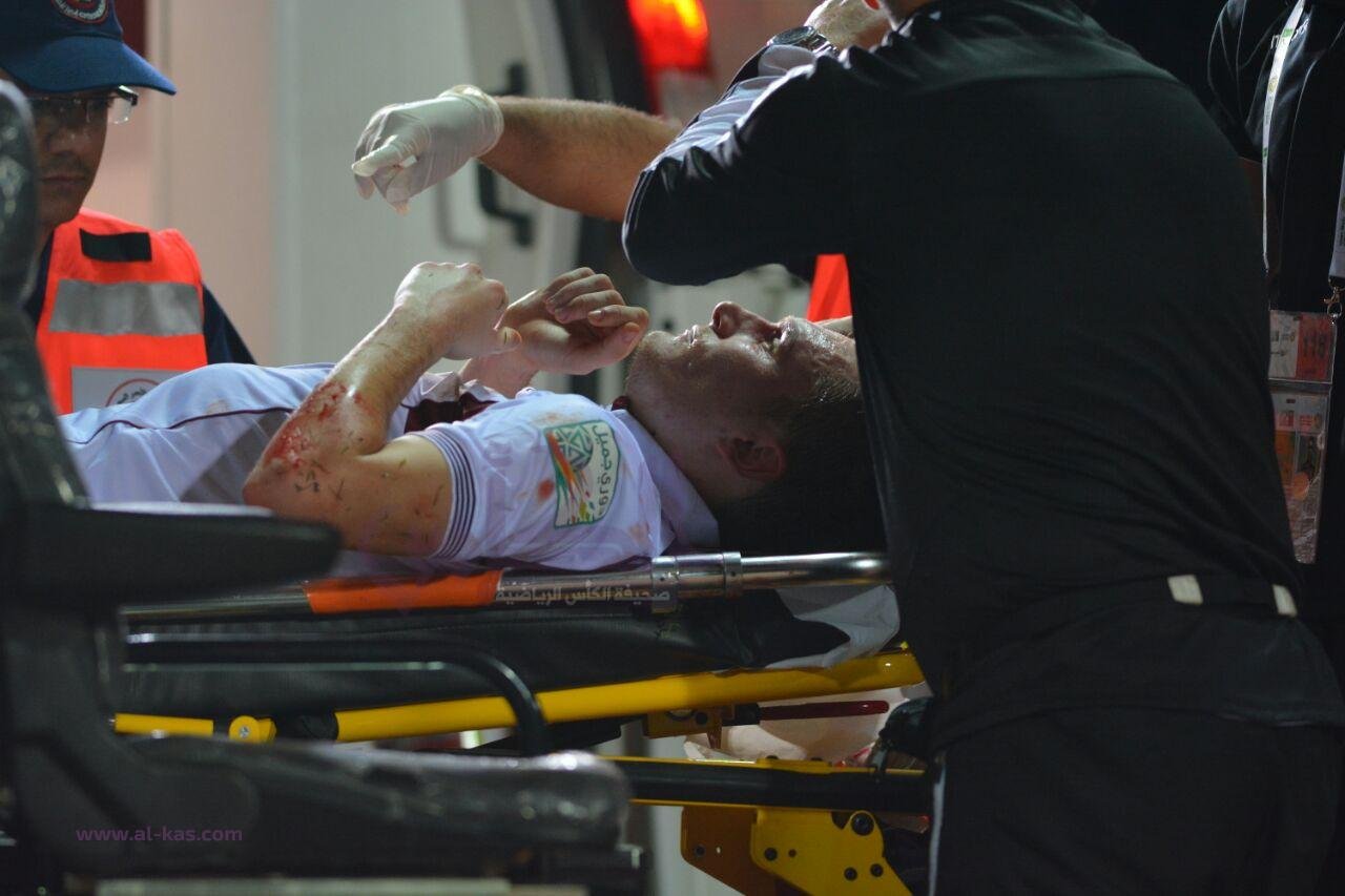 وأظهرت الأشعة تعرض اللاعب إلى قطع فوق الأذن وجزء منها ، استوجب تدخل جراحي وأجريت له خياطة بـ 8 غرز .