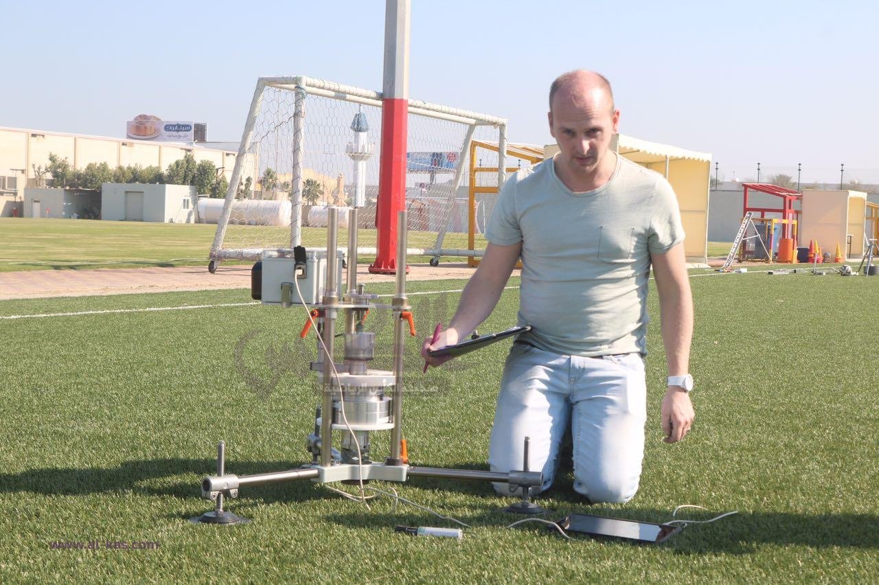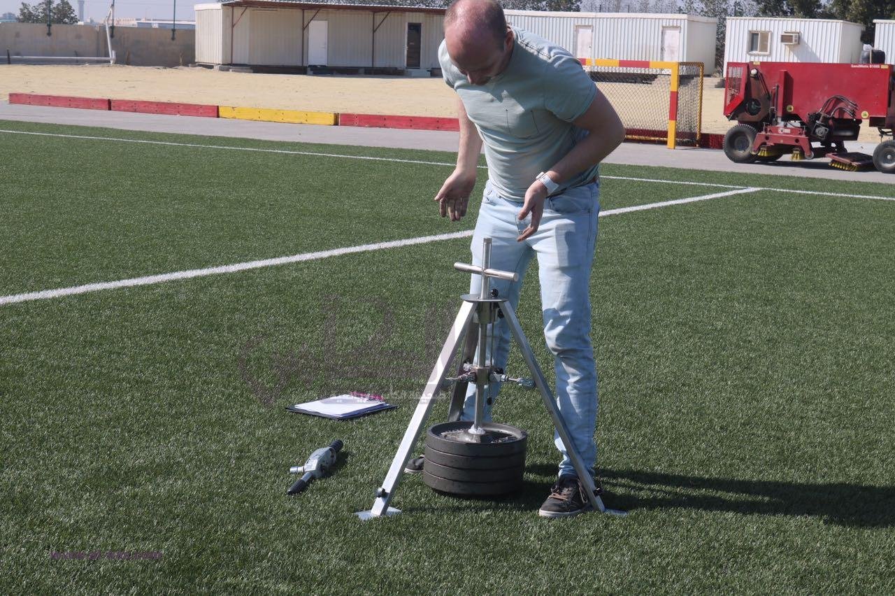 قام السيد Patrick de keijzer “مفتش الاتحاد الدولي لكرة القدم ‘الفيفا’ ” والسيد Frank meuleman مدير الإنتاج بشركة الرؤية الخضراء للانجيلة الصناعية