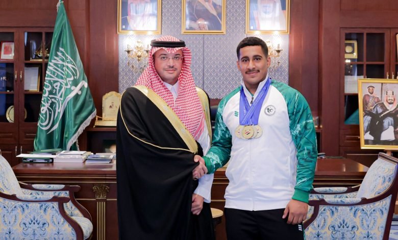 سمو محافظ الأحساء يُكرّم عبدالله الأحمد لاعب أخضر رفع الأثقال