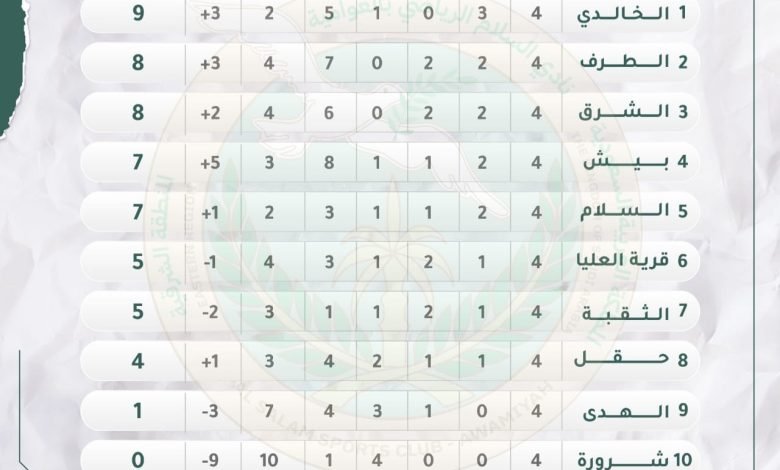 – نادي الطرف والشرق الفريقين الوحيدان الذين لم يتلقوا أي هزيمة.