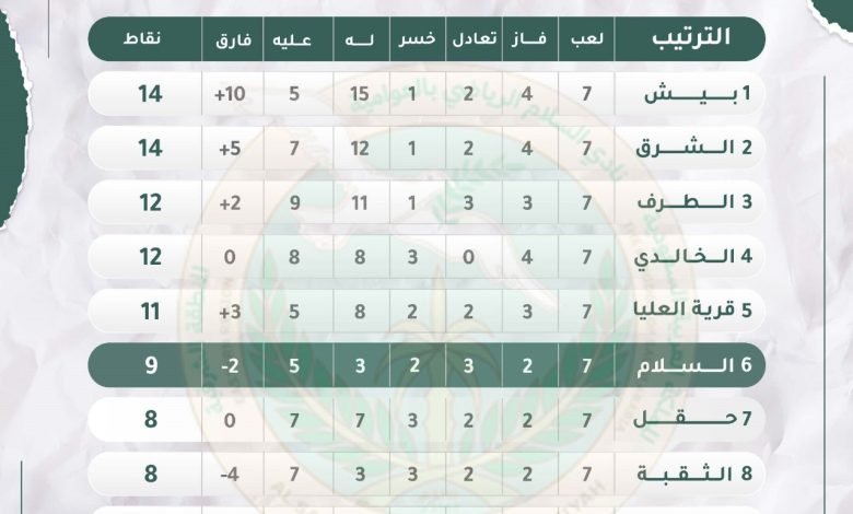 بيش يهزم الشرق ويخطف الصدارة والسلام يتعادل مع الهدى في ديربي القطيف