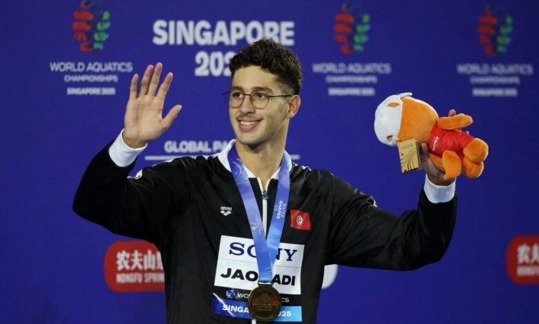دوّن السباح التونسي أحمد الجوادي اسمه بحروف من ذهب في تاريخ السباحة العالمية، بعدما حصد ثنائية ذهبية في سباقي 800 و1500 متر حرة في بطولة العالم التي أُقيمت في سنغافورة، ليؤكد مكانته كأحد أبرز أبطال العرب على الساحة الدولية.