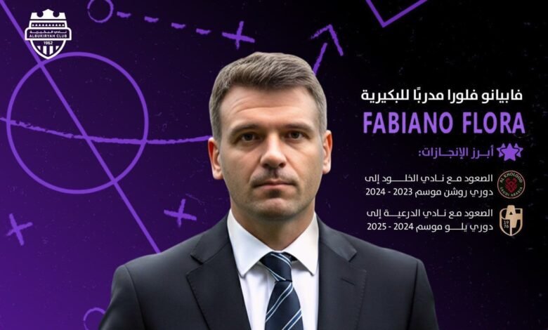 أعادت إدارة نادي البكيرية، المدرب البرتغالي فابيانو فلورا (40) عاماً، إلى الملاعب السعودية من جديد، بعد أن أعلنت التعاقد معه مساء الاثنين، ليكون (البنفسجي) المحطة الرابعة محلياً بعد أن درب سابقاً أندية الساحل، الخلود، والدرعية وترم بصمة مع كل فريق دربه، وابرز ذلك صعوـده بالخلود إلى دوري روشن، وصعوده بالدرعية إلى دوري الدرجة الثانية، وتحقيق درع الدرجة الثانية.