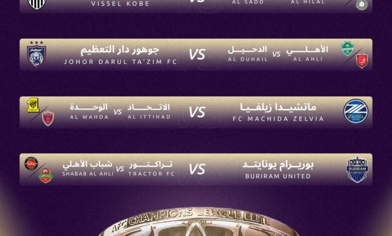اعتمد الاتحاد الآسيوي لكرة القدم، اليوم الخميس، الجدول الرسمي لمباريات دور الـ16 من مرحلة خروج المغلوب (منطقة الغرب) في بطولة دوري أبطال آسيا للنخبة 2025–2026، والتي ستُقام بنظام المباراة الواحدة وبأسلوب التجمع في جدة يومي 13 و14 أبريل 2026، على ملعبي مدينة الملك عبد الله الرياضية وملعب الأمير عبد الله الفيصل.