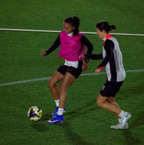 وخاض الفريق حصته التدريبية الأخيرة تحت قيادة المدربة كارملينا، حيث ركّزت الحصة على الجوانب اللياقية والبدنية، قبل الانتقال إلى تطبيق الجمل الفنية والتكتيكية، وصولًا إلى مناورة كروية شهدت تنفيذ النهج الفني الذي سيدخل به الفريق مواجهة الغد.