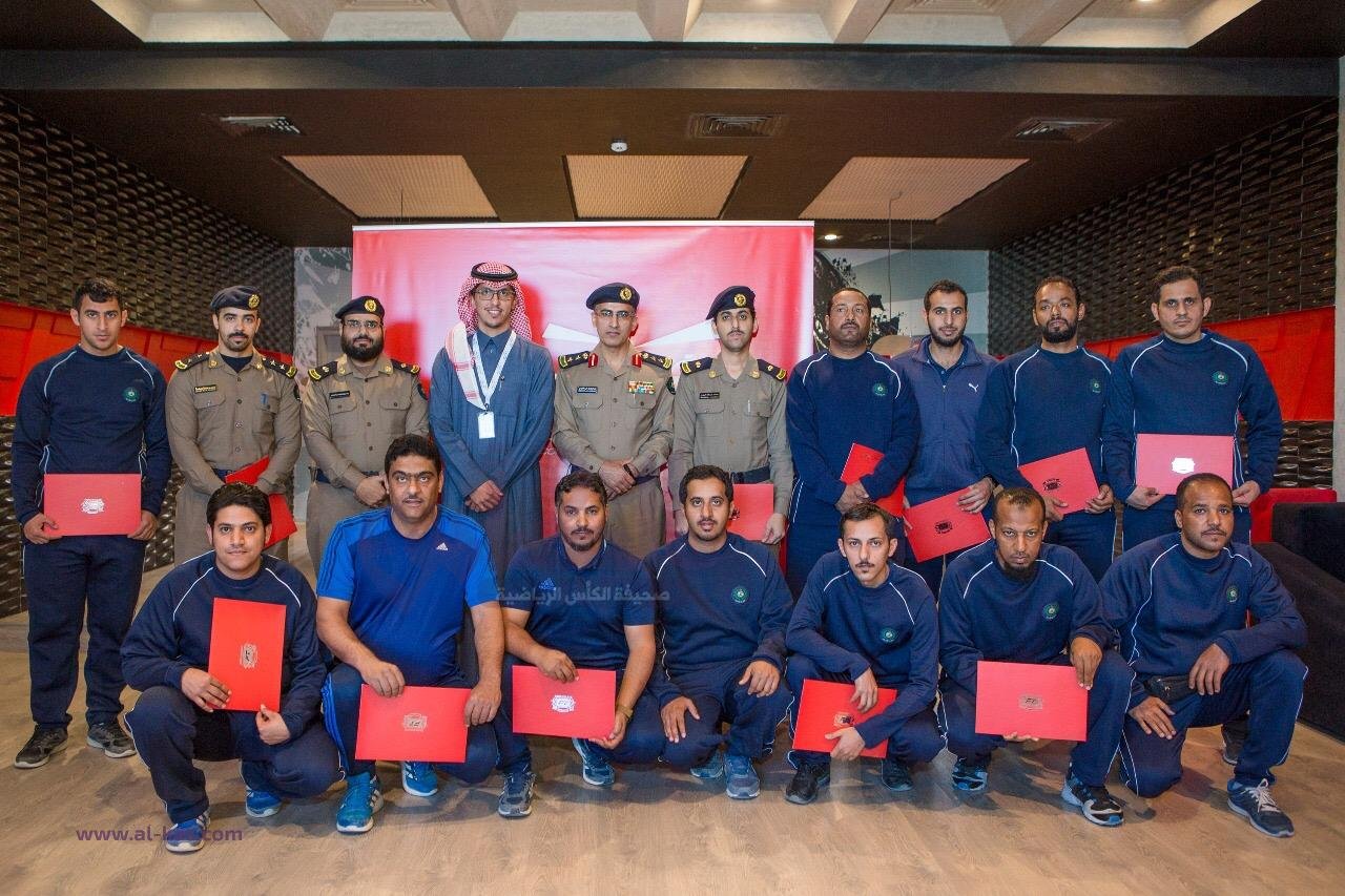 كرم الأستاذ عبدالملك الحقباني، مساعد الرئيس التنفيذي في شركة لجام للرياضة (المالك والمشغل لمراكز وقت اللياقة)، المشاركين في دورة إعداد مدربي اللياقة البدنية المتقدمة الخاصة بموظفي المديرية العام للدفاع المدني من ضباط وأفراد ومدنيين، والتي أقيمت في عدة مراكز لوقت اللياقة في مدينة الرياض، وذلك بحضور العقيد ابراهيم القبيسي، قائد مركز تدريب اللياقة البدنية والنشاط الرياضي في الدفاع المدني.