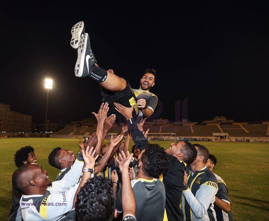 أحتفل لاعبو الفريق الأول لكرة القدم بنادي الاتحاد، بتجديد عقد النجم التشيلي كارلوس فيلانويفا، مع العميد حتى عام 2020 بطريقتهم الخاصة.