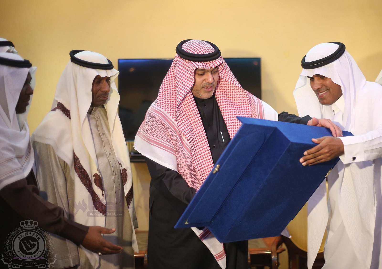 حيث استقبلهم رئيس مجلس إدارة النادي الأستاذ سلمان بن فهد المالك و رحب بهم وتحدث اليهم قائلاً : أنتم في ناديكم وبين اخوانكم انتم الاساس خدمتوا النادي سنين طويلة وادخلتم الفرح والسرور في قلوب جماهير النصر وانا واحد منهم . لقد كان المشجع يراكم ويستمتع بما تقدمونه من عطاء طوال مسيرتكم بالملاعب وبالطبع ناديكم لا يستغني عنكم بل أننا نسعد بكم في أي وقت وجسور التواصل بيننا لا بد ان تتواصل وأن نعمل جميعاً لما فيه مصلحة نادينا واتمنى من الله أن يوفقنا جميعاً لتحقيق آمال وتطلعات جماهير نصرنا الغالية. مجدداً تأكيده على أن أبواب النادي مفتوحة لهم في أي وقت ومرحب بهم دائماً.