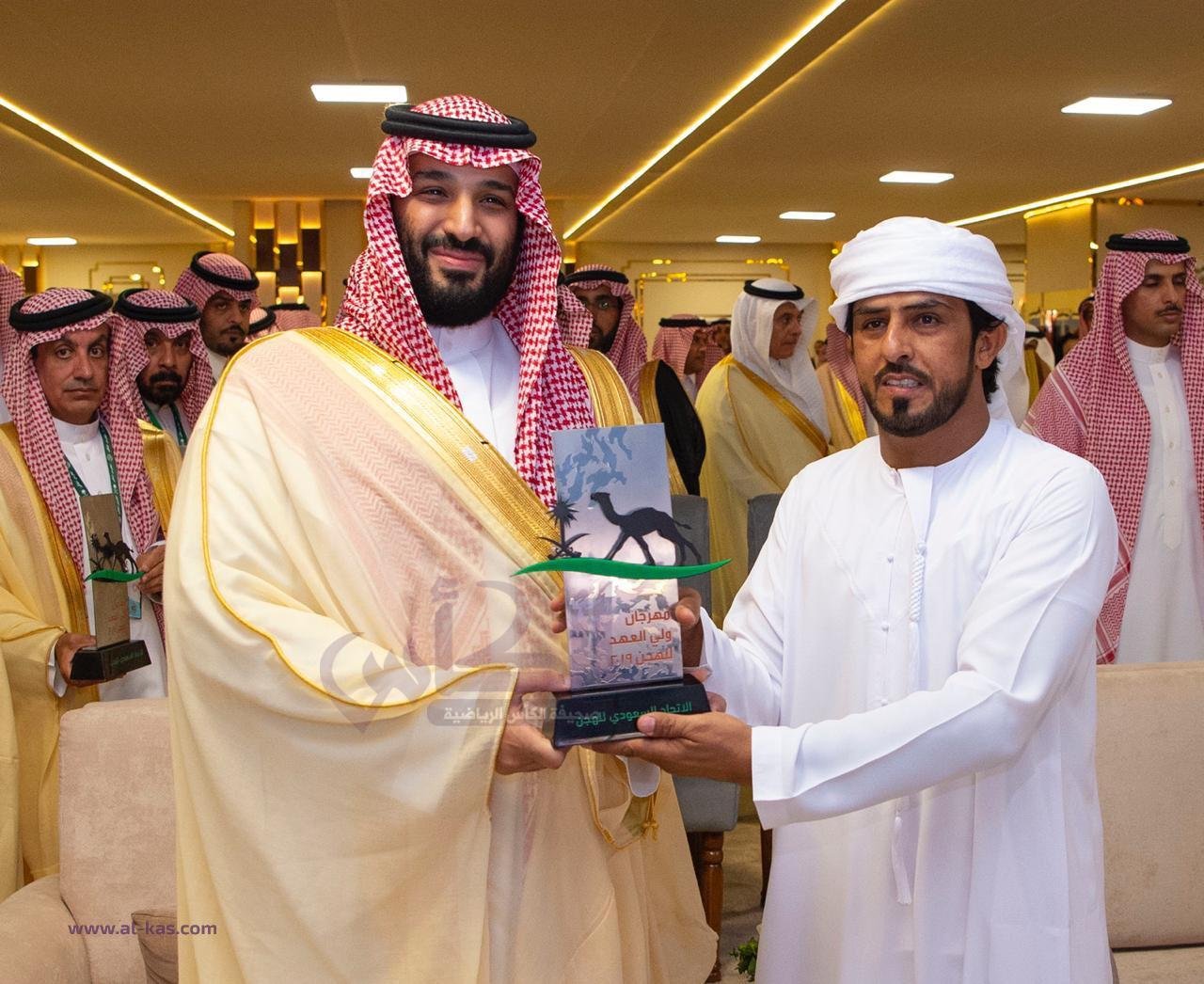 ولدى وصول سمو ولي العهد لميدان الهجن يرافقه صاحب السمو الملكي الأمير تركي بن محمد بن فهد بن عبدالعزيز وزير الدولة عضو مجلس الوزراء، وصاحب السمو الملكي الأمير بدر بن سلطان بن عبدالعزيز نائب أمير منطقة مكة المكرمة، كان في استقبال سموه صاحب السمو الملكي الأمير عبدالعزيز بن تركي الفيصل رئيس مجلس إدارة الهيئة العامة للرياضة رئيس الاتحاد الدولي للهجن، وصاحب السمو الأمير فهد بن جلوي بن عبدالعزيز بن مساعد رئيس الاتحاد السعودي للهجن.