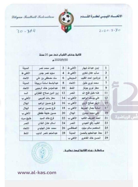 اتحاد الكرة الليبي يعلن عن قائمة منتخب الشباب