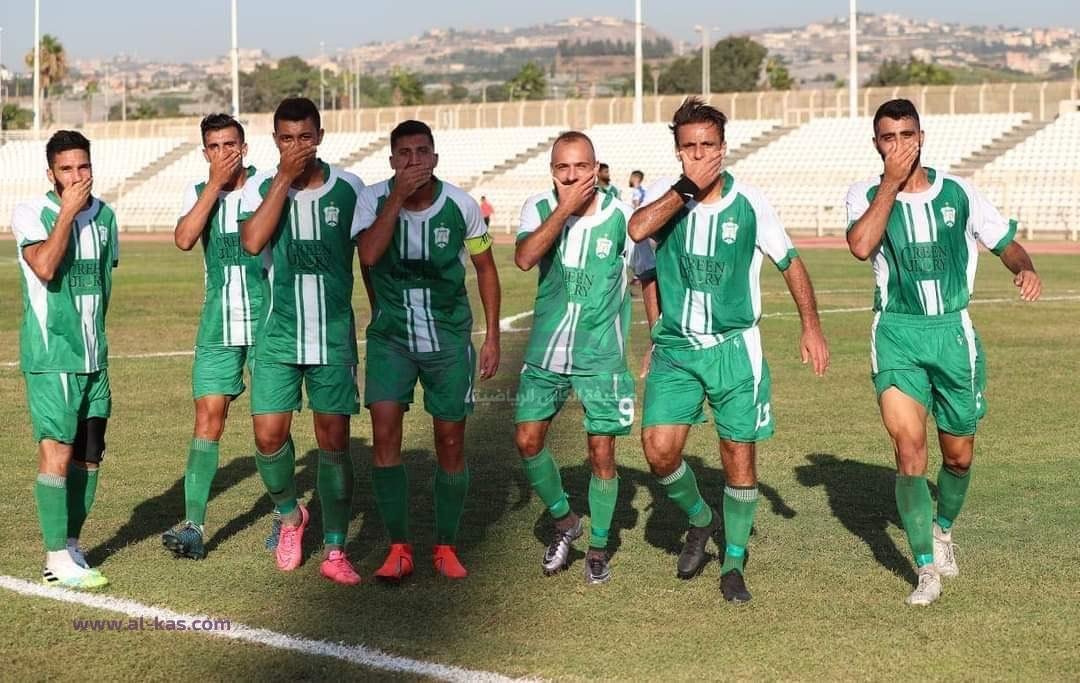 ضمن لقاء الأنصار وشباب الغازية اليوم على ملعب صيدا البلدي والذي فاز بها الفريق الأخضر بثلاثية نظيفة انتشرت صورة للاعبين “الزعيم ” بعد تسجيلهم الهدف الثاني على مواقع التواصل الاجتماعي واضعين ايديهم على افواههم .
