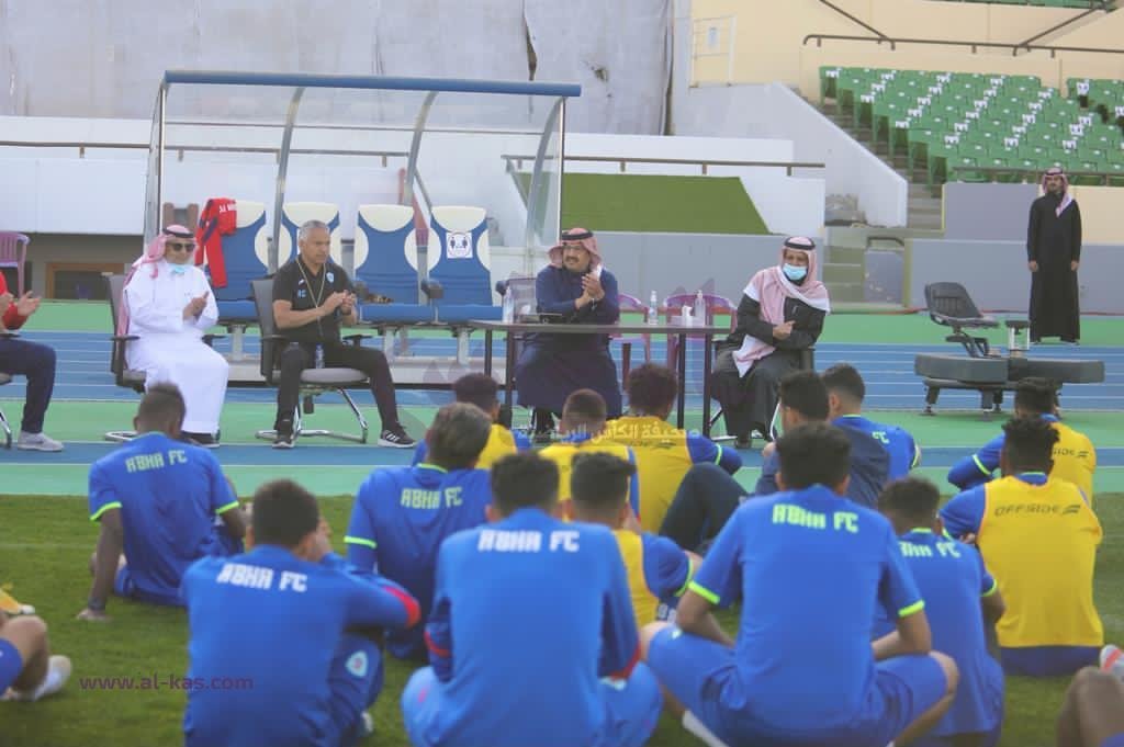 تركي بن طلال يحضر تدريبات أبها ويخاطب اللاعبين