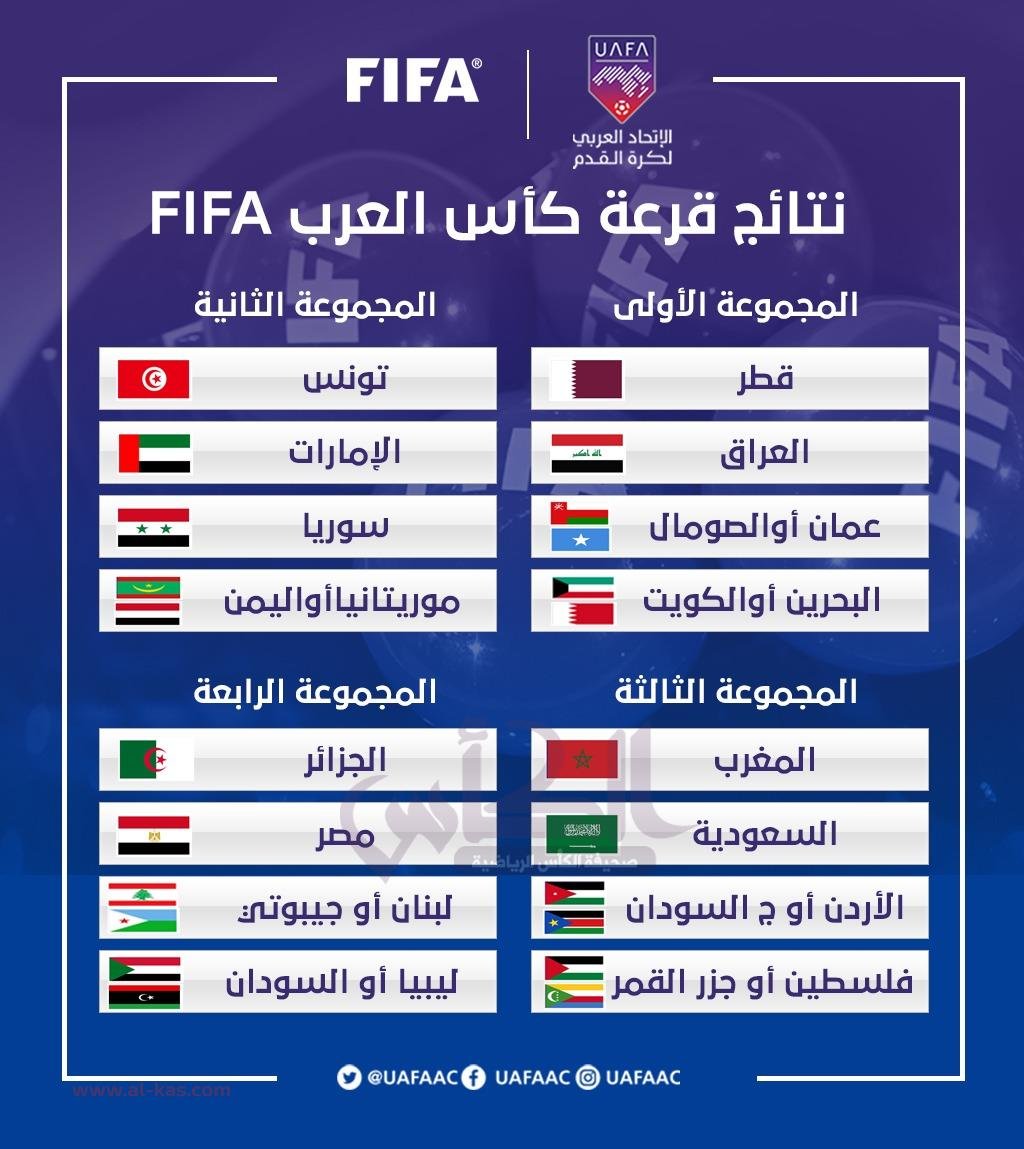 أقيمت مساء الثلاثاء، مراسم قرعة كأس العرب FIFA ، والتي ستقام في دولة قطر خلال الفترة من 1 وحتى 18 ديسمبر من العام الجاري، وأجريت القرعة في حضور صاحب السمو الملكي الأمير عبد العزيز بن تركي الفيصل رئيس الاتحاد العربي لكرة القدم والسيد جياني إنفانتينو رئيس الاتحاد الدولي (FIFA) وسعادة الشيخ جوعان بن حمد آل ثاني رئيس اللجنة الأولمبية القطرية، وسعادة الشيخ حمد بن خليفة بن أحمد آل ثاني رئيس الاتحاد القطري.