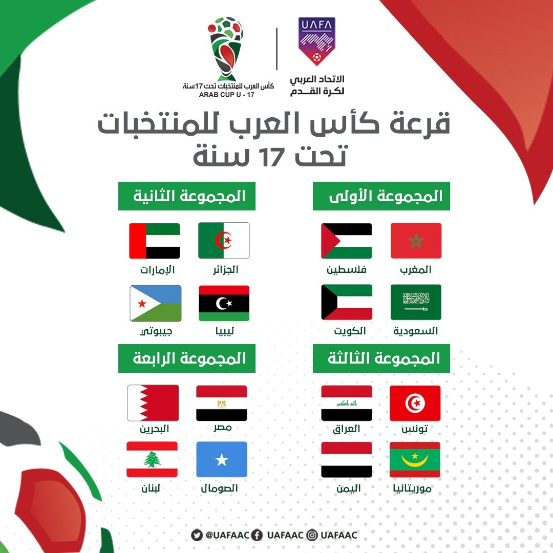 وأسفرت القرعة التي أجريت في حضور النائب الشرفي لسمو رئيس الاتحاد العربي لكرة القدم الأستاذ محمد روراوة والدكتور رجاءالله السلمي الأمين العام للاتحاد، عن المجموعات التالية: