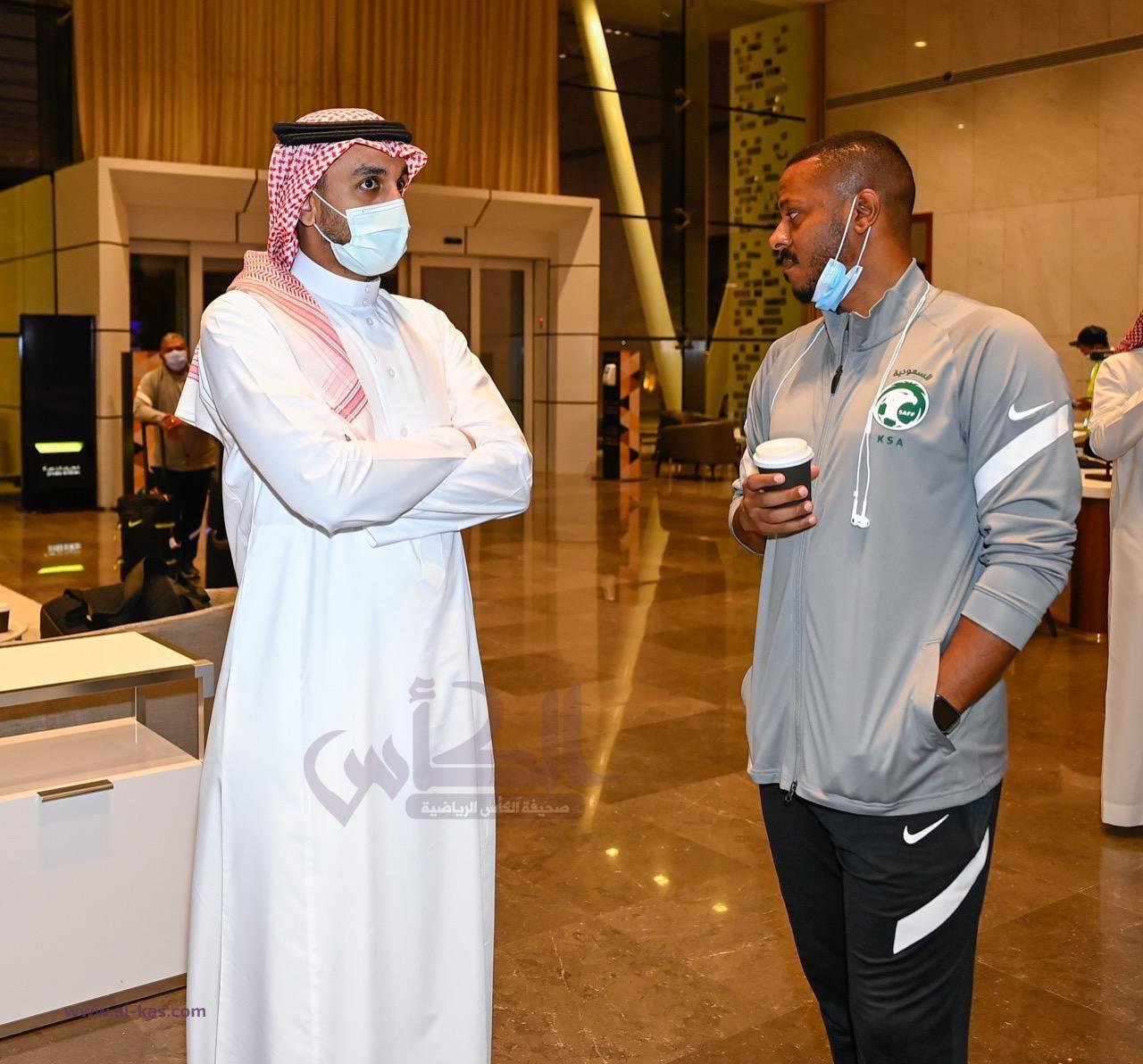 وكان في وداع بعثة “الأخضر” بصالة الطيران الخاص في مطار الملك خالد الدولي، أمين عام الاتحاد السعودي لكرة القدم إبراهيم القاسم، وعضو مجلس الإدارة نعيم البكر.