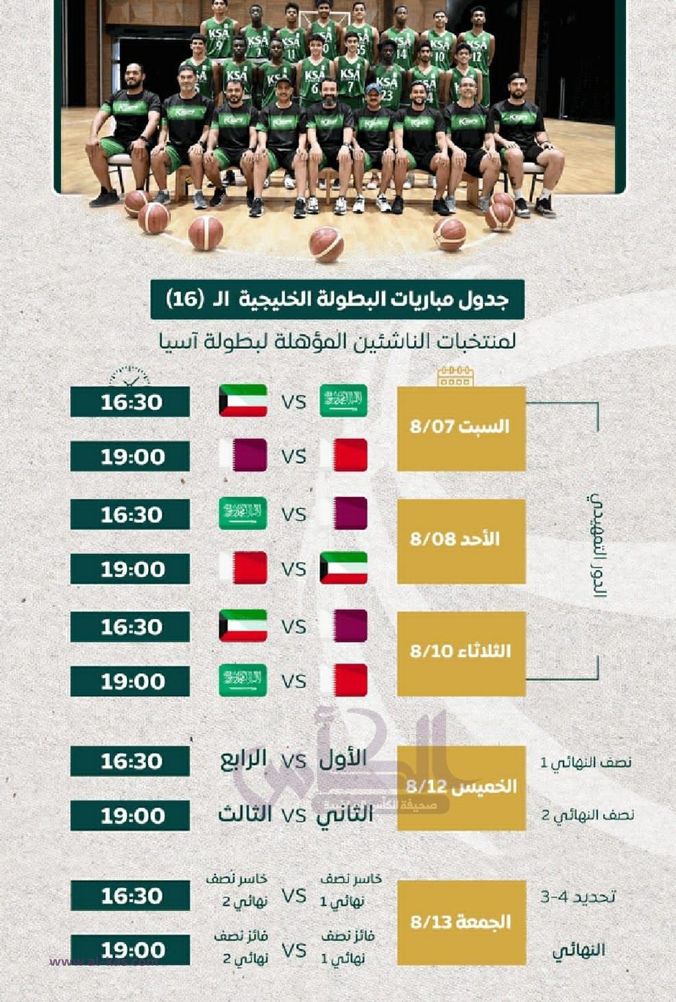 أخضر ناشئي السلة يواجه الكويت في افتتاح الخليجية