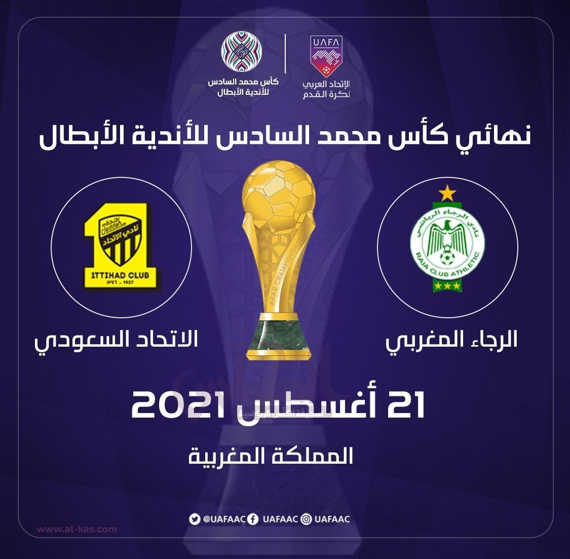 يذكر أن النهائي العربي بين الاتحاد السعودي والرجاء البيضاوي يقام على ملعب مولاي عبد الله بالرباط يوم 21 أغسطس الجاري.