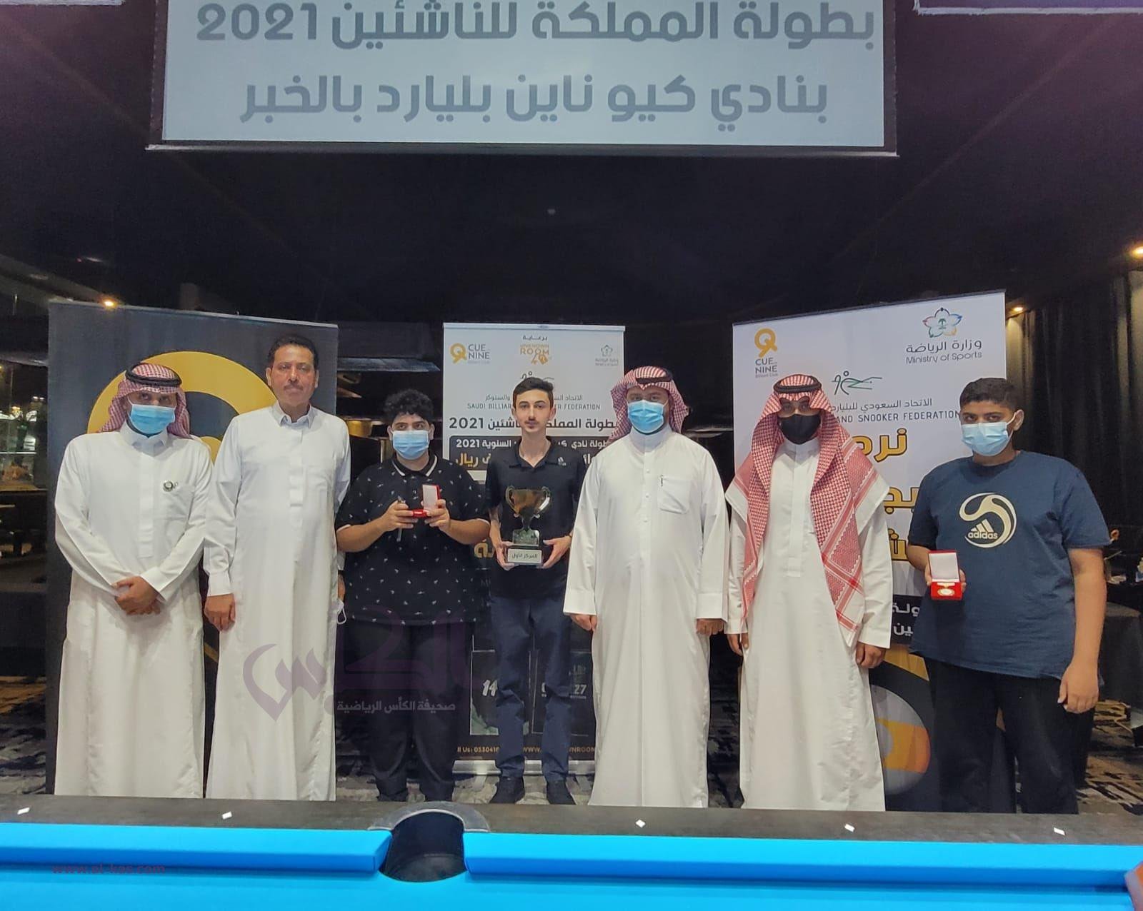 توّج المدير التنفيذي للاتحاد السعودي للبلياردو والسنوكر الأستاذ جراح الشمري اللاعب خالد الغامدي، لفوزه بلقب بطولة المملكة للناشئين للبلياردو 2021 التي أقيمت منافساتها في صالة Q9 في الخبر وذلك بعد تغلبه على خالد الشمردل بنتيجة 7/9 في المباراة النهائية للبطولة التي شارك فيها 23 لاعباً من مختلف مناطق المملكة .