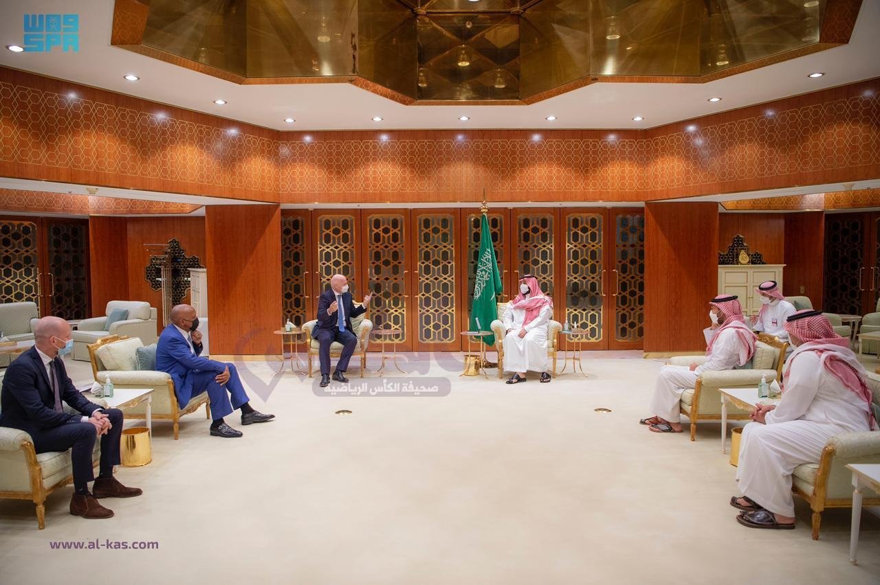 حضر اللقاء صاحب السمو الملكي الأمير عبدالعزيز بن تركي الفيصل وزير الرياضة ورئيس الاتحاد السعودي لكرة القدم ياسر المسحل ونائب الأمين للاتحاد الدولي ماتياس جرافستروم.