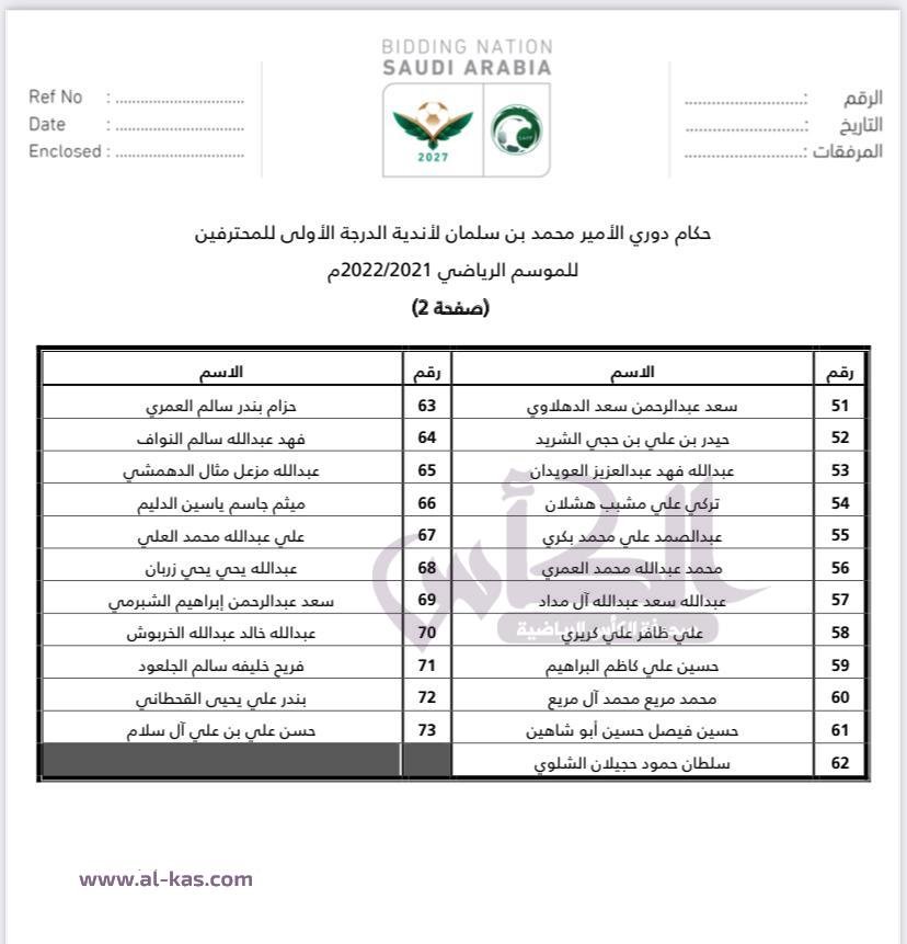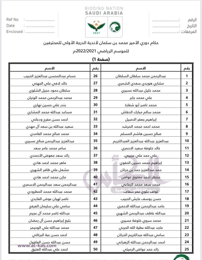تعقد لجنة الحكام الرئيسية بالاتحاد السعودي لكرة القدم الدورة الثالثة لحكام دوري الأميـر محمـد بـن سـلمان لأنديـة الدرجـة الأولـى للمحترفيـن للموسـم الريـاضي 2022/2021م بمدينة الأمير سلطان بن عبد العزيز بمدينة أبها خلال الفترة من 18-2021/8/24م وذلك استعداداً للاختبارات اللياقية الجديدة ( Dynamic YO-YO )، ويهدف المعسكر إلى إعداد الحكام للموسم الرياضي المقبل إضافةً إلى شرح التعديلات الجديدة في قانون كرة القدم، و دراسة ووضع حلول للملاحظات التي تم تدوينها الموسم الماضي ، كما يتضمن المعسكر تدريب الحكام على تقنية الفيديو المساعد للحكم ووقع الاختيار على 73 حكم وحكم مساعد .