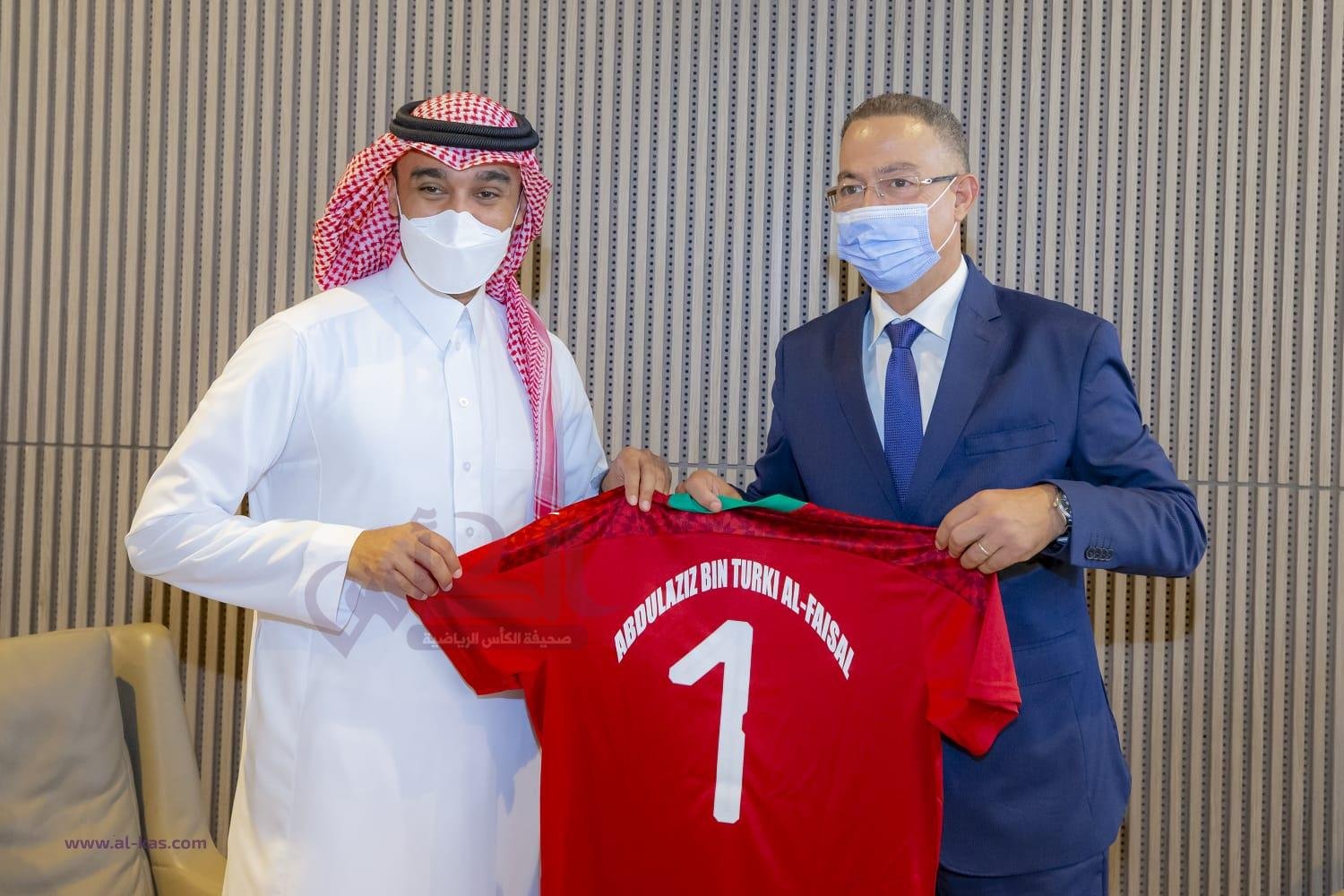 التقى صاحب السمو الملكي الأمير عبد العزيز بن تركي الفيصل رئيس الاتحاد العربي لكرة القدم السبت في العاصمة المغربية الرباط، بمعالي وزير الثقافة والشباب والرياضة بالمملكة المغربية الأستاذ عثمان الفردوس، في حضور معالي الأستاذ عبد الله الغريري سفير المملكة العربية السعودية لدى المملكة المغربية ورئيس الجامعة الملكية المغربية لكرة القدم الأستاذ فوزي لقجع والأمين العام للاتحاد العربي الدكتور رجاء الله السلمي.