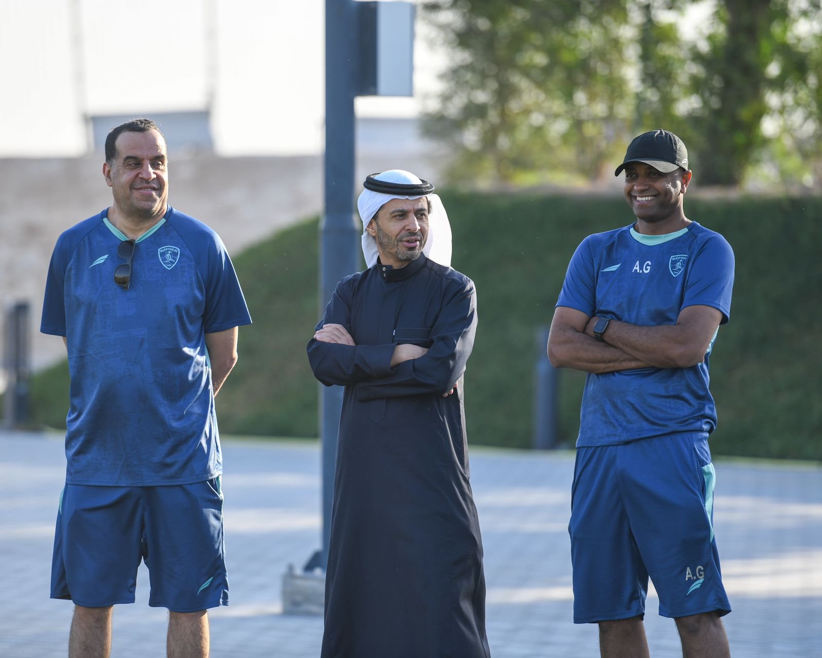 وشهدت التدريبات مشاركة اللاعب نواف بوشل بعد فراغه من المشاركة مع المنتخب السعودي في بطولة العرب والمقامة في دولة قطر .