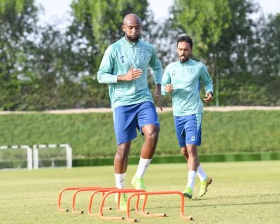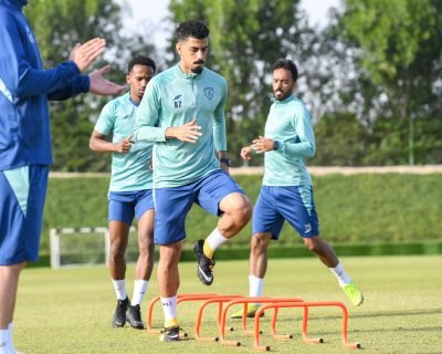 وشهدت التدريبات مشاركة اللاعب نواف بوشل بعد فراغه من المشاركة مع المنتخب السعودي في بطولة العرب والمقامة في دولة قطر .