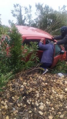 حيث تم استدعاء الجهات المسؤولة و اخراج السيارة التي انقلبت و سقطت في المنحدر الموازي للطريق الدولي.