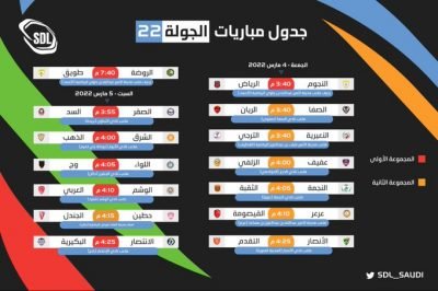 تفتتح عصر الجمعة مباريات الجولة 22 من دوري الدرجة الثانية لكرة القدم وتقام 8 مباريات أولها مواجهة النعيرية الذي يمتلك 20 نقطة والترجي صاحب المركز الثاني 41 نقطة والتي تقام على ملعب مدينة الأمير نايف بالقطيف ، ويلتقي النجمة على ملعبه والذي يحل بالمركز الثالث بـ38 نقطة بضيفه الثقبة متذيل الترتيب ب 13 نقطة الذي يعتبر هذه المباراة طوق نجاة للهروب من الهبوط ، ويحل القيصومة متصدر المجموعة الثانية ب 42 نقطة بضيافة عرعر الذي لديه 17 نقطة ويسعى للخروج من منطقة الهبوط .
