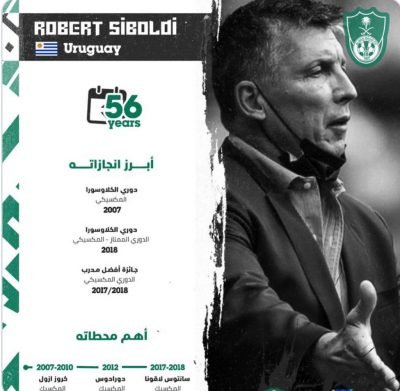ونشر النادي الأهلي على موقع تويتر، “الأوروجوياني روبرت سيبولدي مدرباً للفريق الأول لكرة القدم بالنادي الأهلي حتى نهاية الموسم الحالي.