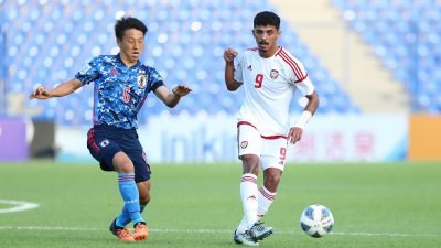 خسر منتخب الإمارات العربية المتحدة أول لقاءات البطولة من المنتخب الياباني بنتيجة 2/1 سجل للمنتخب الياباني اللاعب سوزوكي في الدقيقة 61 ثم يعادل الإمارات في الدقيقة 63 عن طريق اللاعب ياسر البلوشي ويهدر عبدالله ادريس ركلة جزاء في الدقيقة 73 ليضيع فرصة الامارات في التقدم، وفي الدقيقة 76 يسجل ماو هدف اليابان الثاني لينتهي اللقاء بفوز المنتخب الياباني.