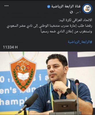 المدرب شريف مؤمن : مضر يُعلن التعاقد والإتحاد العراقي يتمسك بخدماته