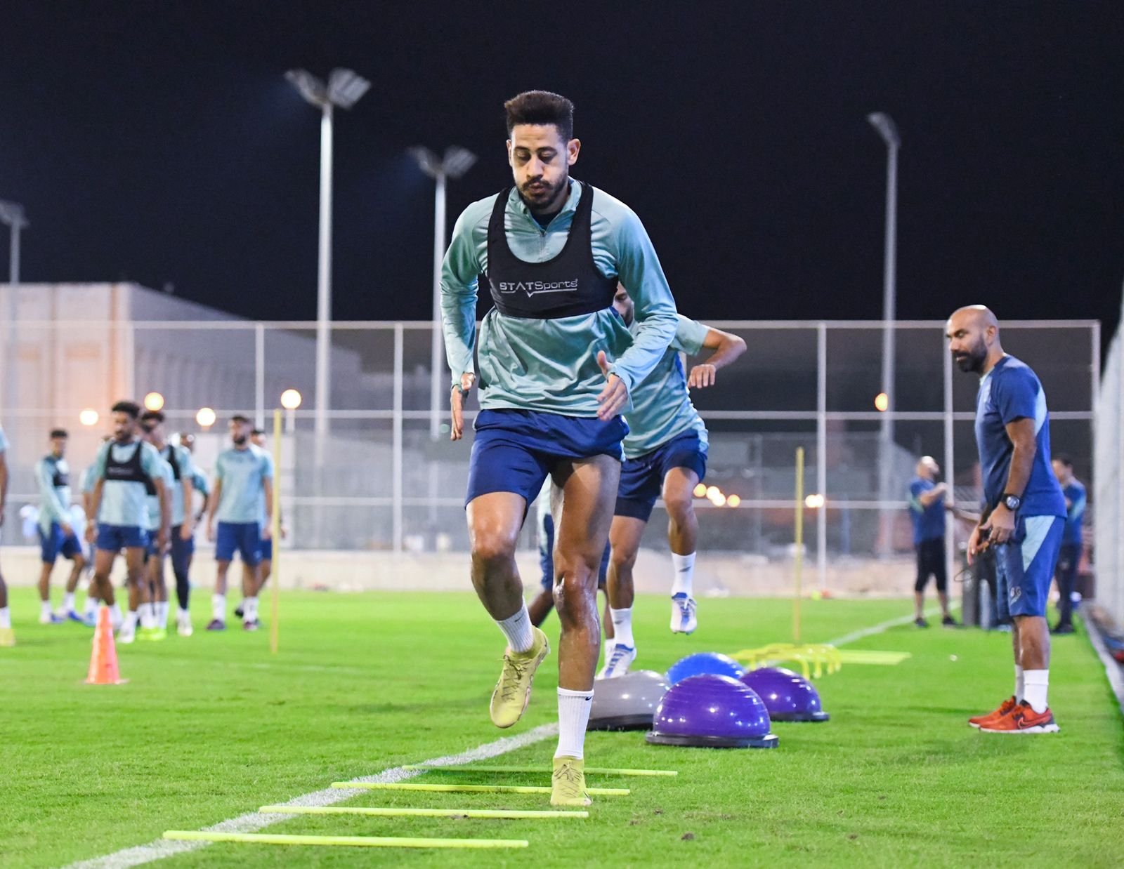وانطلقت التدريبات بالجوانب اللياقية من خلال الجري حول الملعب والقفز على الحواجز، بعدها طبق المدير الفني جورجيس دونيس العديد من الجمل الفنية بتبادل الكرة في مساحات مختلفة مع التحرك المستمر وفتح المساحات، ثم طبق دونيس التكتيك الذي ينوي به مواجهة الرائد عبر المناورة التي أجراها على ثلثي مساحة الملعب.