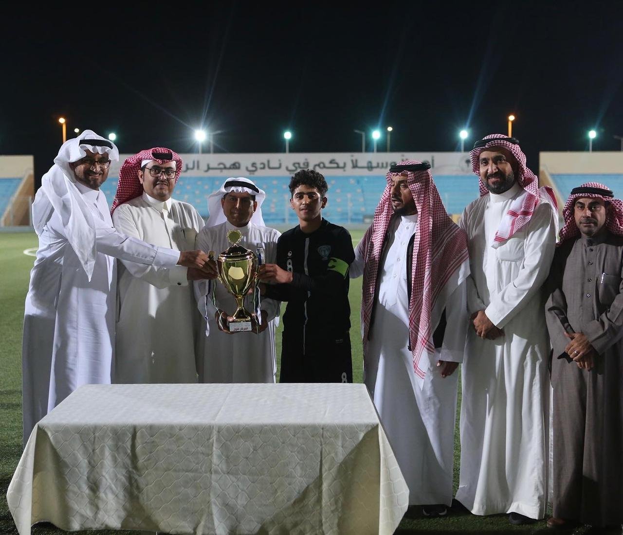 وبعد نهاية المباراة قام ممثل مكتب وزارة الرياضة بالأحساء أحمد الشواف بتتويج براعم هجر بكأس البطولة والميداليات الذهبية وبحضور عدد من أعضاء مجلس إدارة النادي .