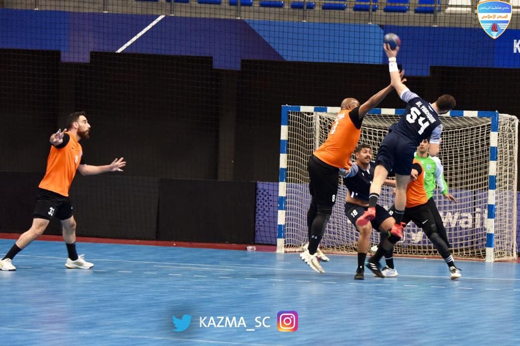 وظهر لاعب الدائرة فواز الملا كعنصر مؤثر من خلال الـــ6 متر أربعة أهداف، يُحسب لكاظمة أنه استطاع تصحيح الوضع الدفاعي وكانت الصعوبة واضحة على أداء القرين الهجومي في عملية التصويب الخارجي أو الاختراق وحتى التمرير على لاعب الدائرة المميز في اليرموك من خلال الشوط الأول، استمر كاظمة في سيطرته على نتيجة اللقاء من خلال التقدم بفارق 4 أهداف 31-27 مع الدقيقة 27 لينهي كاظمة المباراة من خلال الشوط الثاني بنتيجة 33-29.