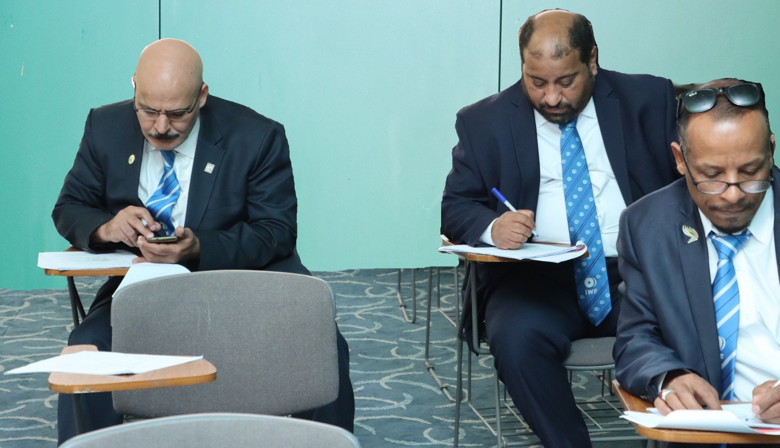 الحكام الدوليين لرفع الأثقال يؤدون الاختبارات لنيل الشارة الدولية للمستوى الأول