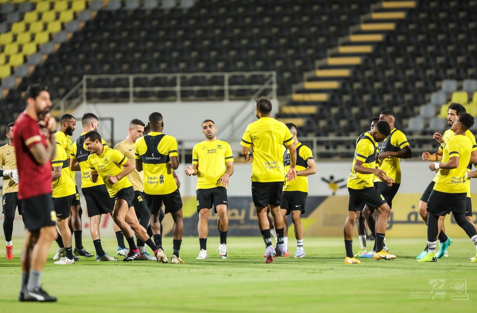وخاض الفريق مرانه الأخير قبيل الدخول الى المعسكر وسط حضور وتواجد جميع اللعبين بمافيهم الكابتن عبدالرحمن العبود والذي تواجد بمعسكر الفريق بأمر من المدرب نونو سانتو والذي سوف يدفع به أساسيًا في مباراة اليوم .