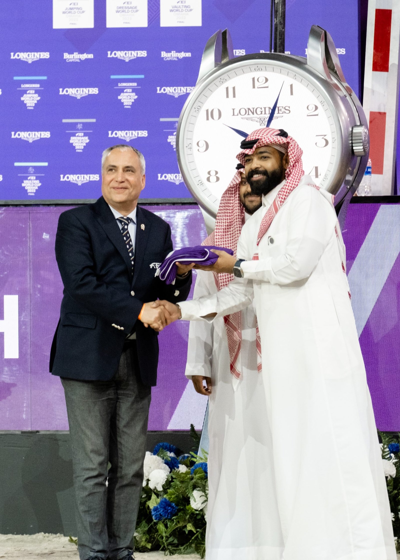 تسلمت المملكة العربية السعودية أمس الأحد، علم استضافة بطولة كأس العالم لقفز الحواجز والترويض 2024م والتي ستقام في شهر أبريل من العام المقبل في الرياض لأول مرة في الشرق الأوسط.