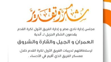 الكأس – مصطفى الشريدة تنطلق الاثنين بعد صلاة المغرب تدريبات الفريق الأول لكرة القدم بنادي العمران…