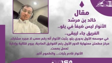 خالد بن مرشد يكتب:”الأنوار يثبت حضوره في يلو.. بداية قوية وطموح أكبر”