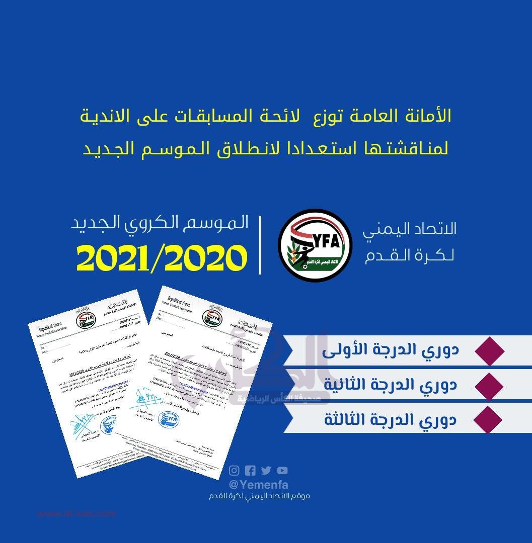 وزعت الأمانة العامة للاتحاد اليمني لكرة القدم اليوم مشروع لائحة المسابقات الخاصة بالموسم الكروي الجديد2021/2020. عقب توقف النشاط لأكثر…