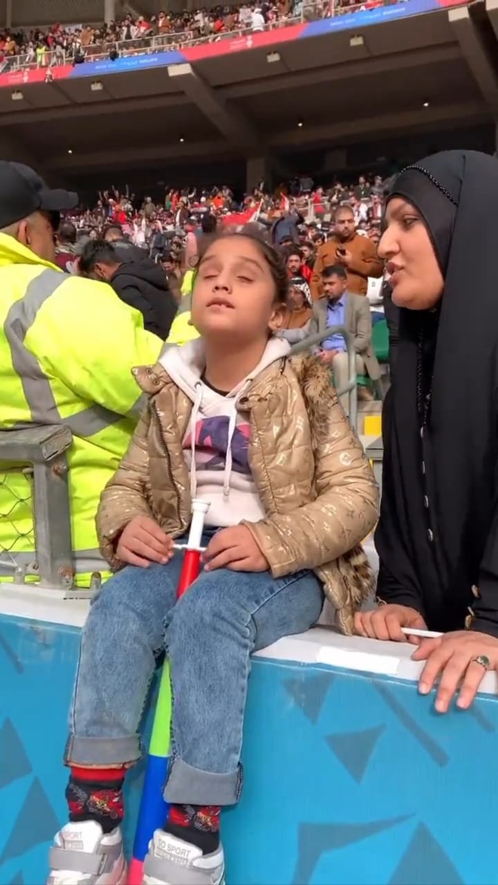 الكأس عبدالله العبيدي   التقط أحد الجماهير مقطعًا مصورًا لطفلة عراقية من ذوي الاحتياجات الخاصة،الهمم) تشارك الجماهير العراقية…