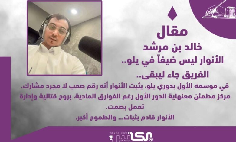 خالد بن مرشد يكتب:”الأنوار يثبت حضوره في يلو.. بداية قوية وطموح أكبر”